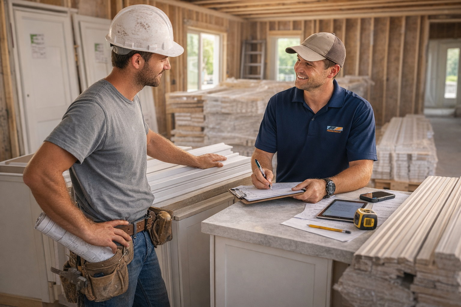 At our core, we’re here to make your project easier. We offer cabinets, moulding, doors, and stair parts at fair prices, paired with a level of service that’s hard to find. You’ll work with one dedicated person who understands your job from start to finish, so nothing gets lost in translation. We keep communication simple, timelines tight, and if we don’t have what you need, we’ll order it quickly and get it to you sooner than you thought possible. Plus, we offer affordable delivery right to your job site to take one more thing off your plate.